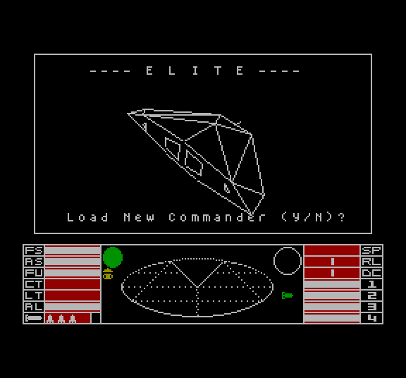 Shift opens the options page, Symbol (Left-Ctrl in SimCoupé) for the saving/loading menu (only when docked). Most of the remaining keys are the same as the original Elite, but some have extra pages (buying ships, contracts, etc.).