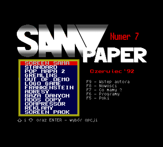 On the other hand, more time to develop this article will make it a better article - for something. So many apologies and now some more interesting information. I've written a new Screen Pack, you can see it and judge for yourself. It can be operated in several ways: using the joystick, cursors and the Shift or Enter keys, or the QAOP and M or Space keys. Individual images can also be accessed directly using the function keys. To return to SP, simply press the Escape key. In order not to spoil the surprise, I will only say that different icons cause different effects, e.g. changing the speed of the arrow movement or... You will see for yourself!