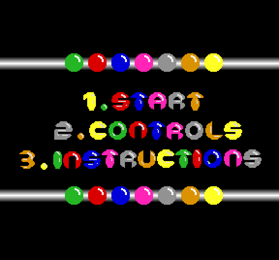 The game is complete when you have succeeded in eliminating all seven coloured keys. There is no time limit or loss of lives in this game as the going does tend to get a little tough. Keys default to joystick with " SPACE" as the rotate key, but you can select cursor control if you really want to.
